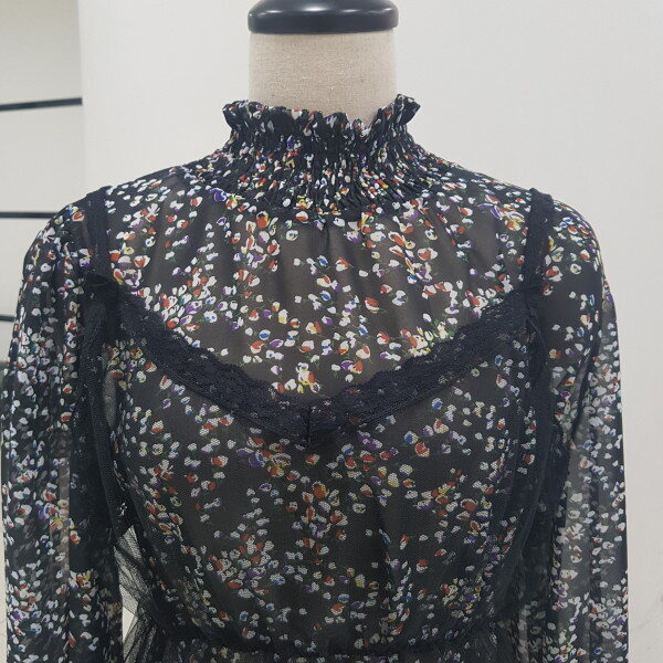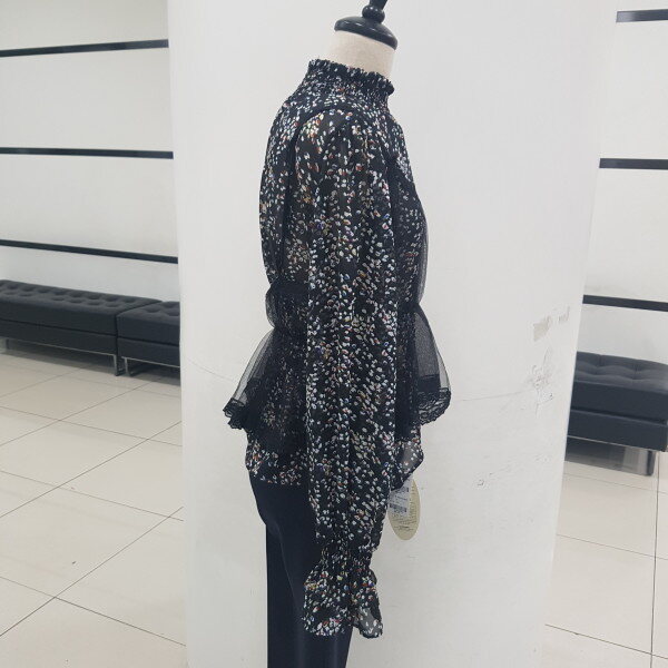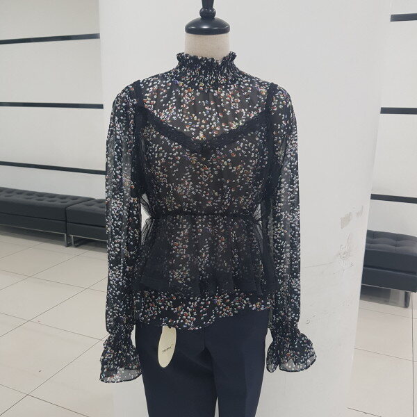 섹시한 느낌을 주는 나염 블라우스입니딘
