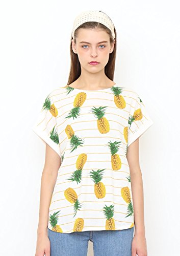-. Title : (グラニフ)graniph ロールアップ半袖Tシャツ / パイナップルフィールド ( オフホワイト )