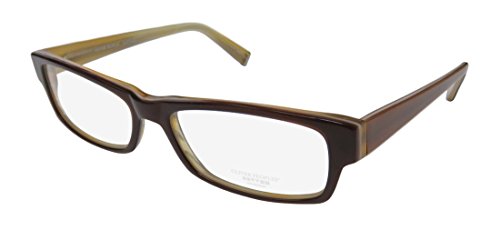 Brand: Oliver Peoples Style: Drake Gender: unisex Frame Type: full-rim Frame Material: plastic Case: original The frame is fully rx-able and can be fitted with prescription and/or tinted lenses at most optical stores. Please note that factory demo lenses have a logo stamped on them in ink. This frame provides comfortable fit and flatters a variety of face shapes. These eyeglasses are crafted from high quality, durable premium acetate plastic. Original case is included. The glasses are made in Japan. These eyeglasses retail for $420.00 at upscale stores that carry designer frames. Save your money and get them here! The pictures cannot fully reflect the beauty of this piece of designer eyewear. These eyeglasses look even more elegant in real life. 0 |
