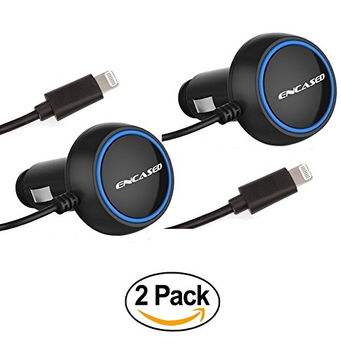 2 PACK High-Performance Apple Lightning Car Charger - by Encased [MFI Certified] (Rapid Charge 2.4A Output) For iPhone 7, 7 Plus, iPad Mini, iPad Air, iPod Touch (iPhone 5 5S 5C)