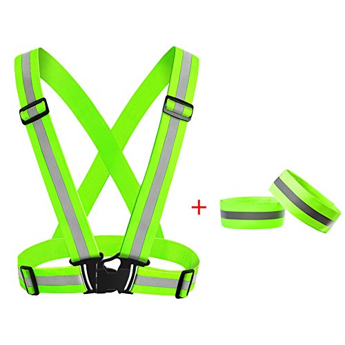 Reflective Safety Belts, High Visibility-1000 feet Reflective Vest Set with Bands, Adjustable & Lightweight, for Running, Walking & Cycling Motorcycle Safety - Fits Women, Men & Kids