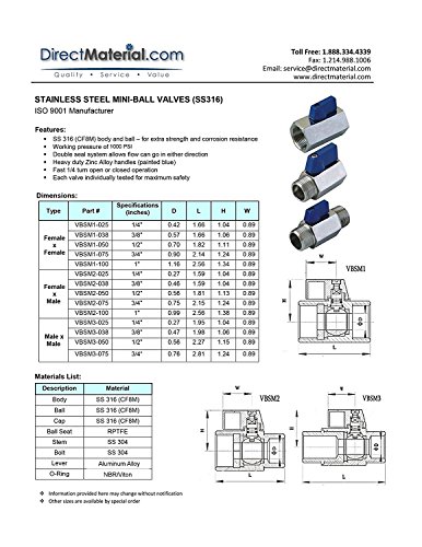 1/2" Stainless Steel (316) Mini Ball Valve - FxM NPT