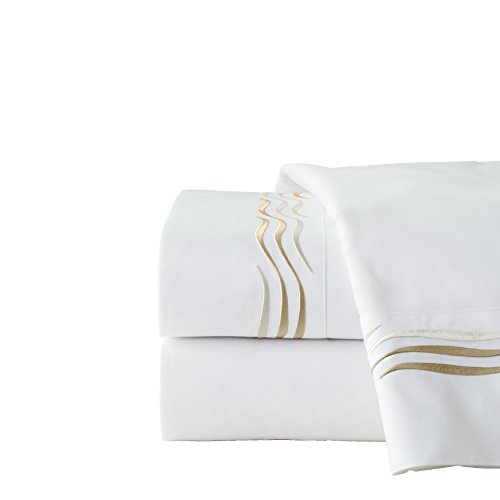 300 Threadcount Wave Embroidered Sheet Set - Queen Ivory
