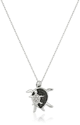 -. Binding : Jewelry -. Brand : Amazon Collection -. Department : women -. EAN : 0696736959110 -. Feature : 10k white gold necklace featuring mother and baby turtle pendant accented with black and white diamonds / Black diamonds may have been treated to improve their appearance or durability. / All our diamond suppliers confirm that they comply with the Kimberley Process to ensure that their diamonds are conflict free. / Imported / Carat weight listed is the total for all stones. -. Label : Amazon Curated Collection -. Manufacturer : Amazon Curated Collection -. Model : RW4318V2FWCA -. MPN : RW4318V2FWCA -. PartNumber : RW4318V2FWCA -. ProductGroup : Jewelry -. ProductTypeName : FINENECKLACEBRACELETANKLET -. Publisher : Amazon Curated Collection -. Studio : Amazon Curated Collection -. Title : 10k White Gold Black and White Diamond Mother and Baby Turtle Pendant Necklace (.08 cttw), 18" -. UPC : 696736959110