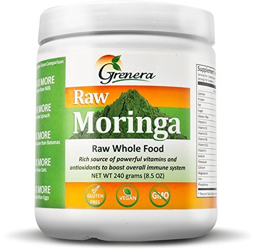 -. Feature : Contains 90 Nutrients and 46 Antioxidants / 100% Pure Organic Moringa Leaf Powder / Moringa leaves are carefully grind and processed, leaving a completely vegetarian, power packed and pure supplement to boost your health regime. / Gluten Free, Vegan, Non-GMO / Includes 240 Grams Powder, 30 Servings Per Container