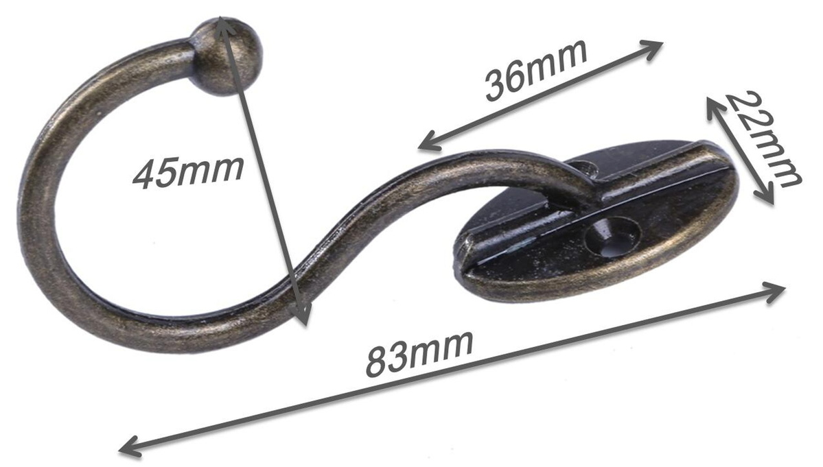 アンティーク調 壁フック 2つ 穴 アンダー 22×83mm ブロンズ 10個セット