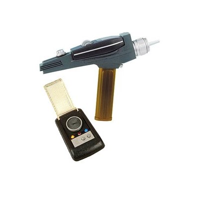 -. Binding : Toy -. Brand : Diamond Select -. Color : Gold -. Department : Men -. EAN : 0699788177761 -. Feature : Entertainment Earth Exclusive! Shoot 1st! Talk later! / You get both a communicator and a phaser. Just like the props from the original series... only better! Get ready for the ultimate Star Trek adventure! / Communicator voices 8 phrases from the TV show. Communicator can be configured to 'call you back.' Phaser has an exclusive gold handle and detachable mini hand phaser. / This is like nothing else on the market today! 'Enterprise, this is Kirk.' Get ready for the ultimate Star Trek adventure with this EE Exclusive Star Trek Original Series Classic Gold Phaser and Communicator set! / With sound effects and clips from the groundbreaking sci-fi series, each of these limited edition collectibles features audio from the classic episodes and deluxe window-box packaging. These exclusive, life-size replicas aren't like anything else on the market today! The communicator has a matted paint base and a plastic cover grille cover that also functions in the show as an antenna, while the phaser comes in an exclusive gold-handle version. -. Label : Diamond Select -. Manufacturer : Diamond Select -. MPN : DIAM17776 -. PartNumber : DIAM17776 -. ProductGroup : Toy -. ProductTypeName : TOYS_AND_GAMES -. Publisher : Diamond Select -. Size : Medium -. Studio : Diamond Select -. Title : Star Trek Gold Phaser and Gold Communicator - EE Exclusive -. UPC : 699788177761
