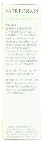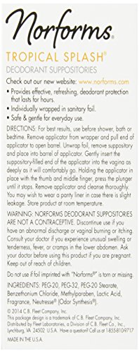Product DescriptionNorforms Tropcial Splash Feminine Deodorant Suppositories provide effective, refreshing, deodorant protection that lasts for hours.0