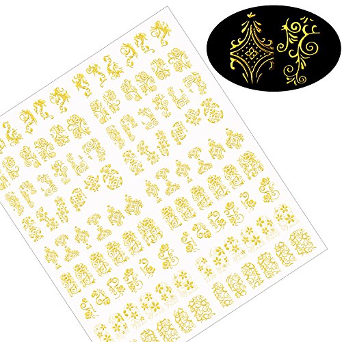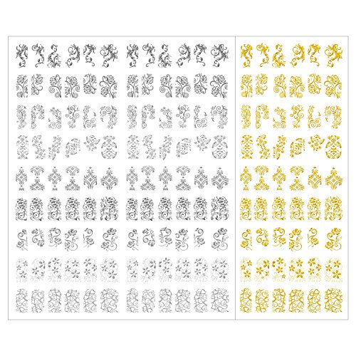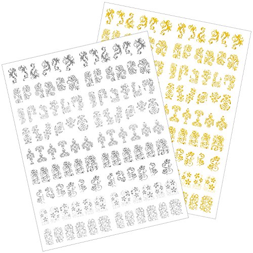 Mudder 216 Pieces 3D Flower Nail Art Stickers Decals Self-adhesive Nail Tips Decorations, 2 Sheet (Silver and Gold)