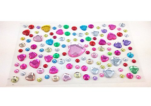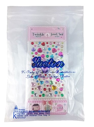 yueton 5 Sheets Colorful Heart and Round Style Assorted Size Self Adhesive Bling Rhinestone Craft Jewels Gem Diamond Sticker Embellishments