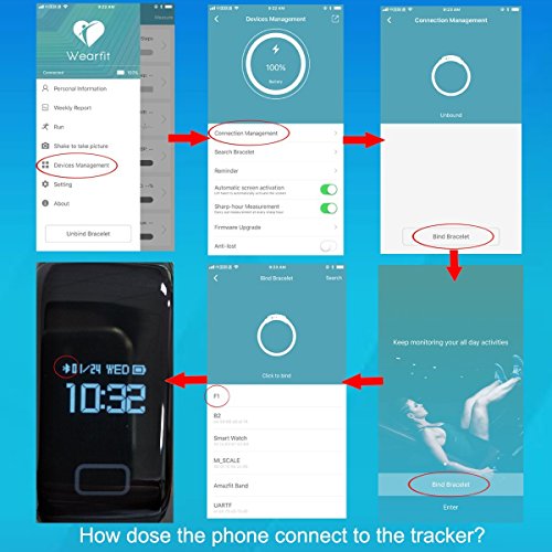 Dawo Fitness Tracker Watch IP68 Waterproof Activity Wireless Smart Bracelet with Continuous Heart Rate Monitor Step Calorie Sleep Counter Bluetooth Wristband Pedometer Sports Smart Band(Black)