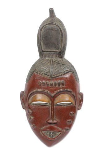 NOVICA Decorative Gabonese Large Sese Wood Mask, Brown, 'Beauty'