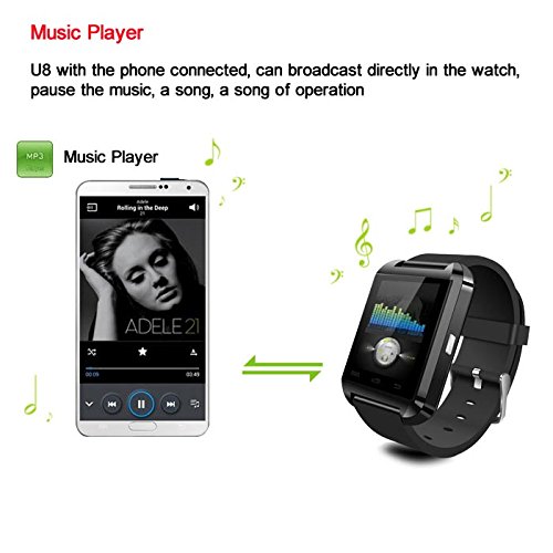 - Feature : Bluetooth Version V3.0 Operating Range 10 meters with Microphone / Digital Feature: LED display Case Shape: Rectangle / Place and answer calls directly from you wrist watch. With built-in speaker and microphone for hands-free chatting. Sync smart phone contact list to the wrist watch, makes it easier to place a call / Text message sync, caller ID display, LED time display, alarm clock / ANDROSET For iPhone Samsung HTC Nokia Blackberry Sony SmartPhones-compatible with all Bluetooth enabled smartphones, tablets and PCs, such as iPhone 4, 4S, 5, 5S, Sumsung S3, S4, Note 2, Note 3, Note 4