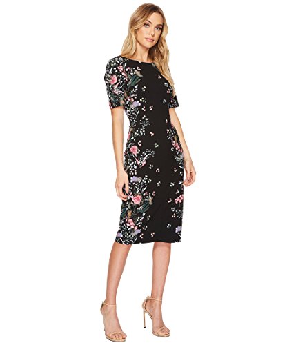 Adrianna Papell Women's Printed Sheath Midi Dress, Black/Multi, 16