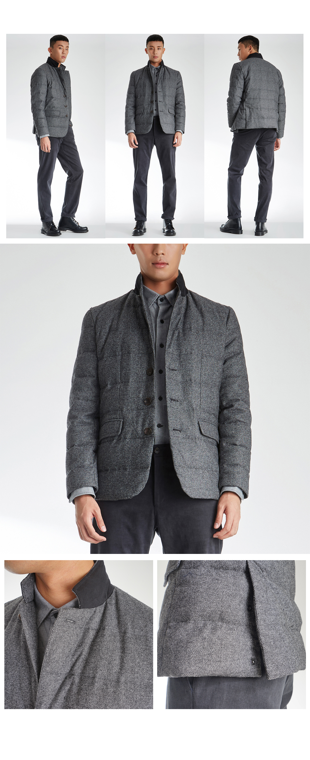 -멜란지 색상의 원단과 클래식한 디자인의 조화로 포멀한 루킹