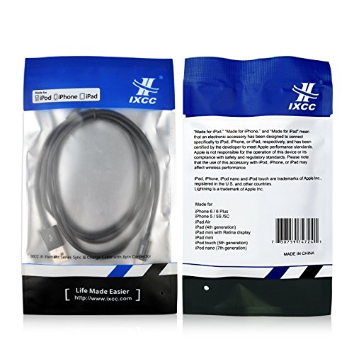 - Title : [Apple MFI Certified] iXCC ® Lightning Cable 3ft (Three Feet) Element Series 8 pin USB SYNC Cable Charger Cord for Apple iPhone 5 / 5s / 5c / 6 / 6 Plus / iPod 7 / iPad Mini / Retina / iPad 4 / iPad Air