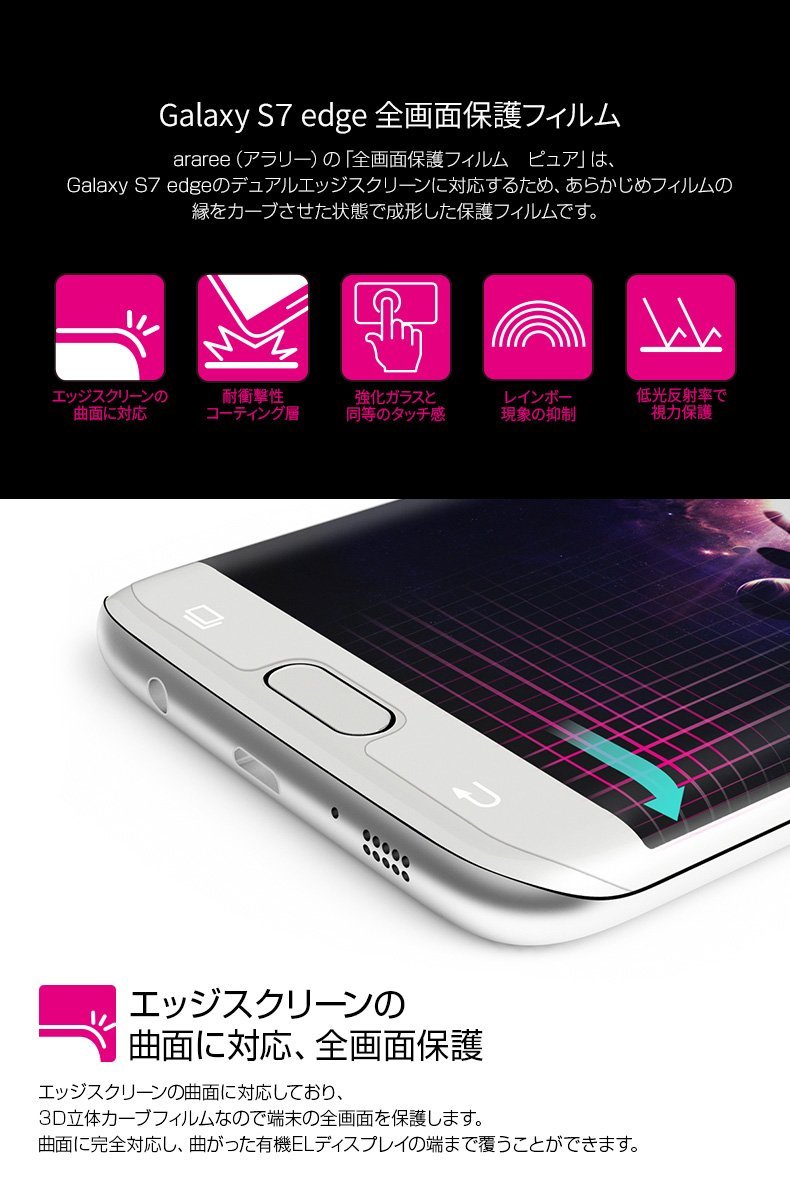 "Full screen protective film pure" of araree (Ally) is a protective film molded with the film edge curved beforehand in order to correspond to the dual edge screen of Galaxy S7 edge.