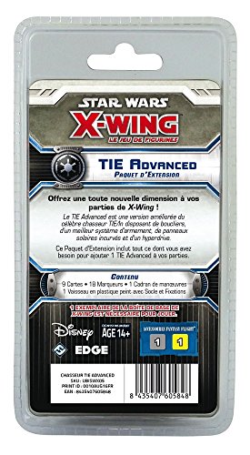-. Author : Fantasy Flight -. Binding : Toy -. Brand : Fantasy Flight Games -. EAN : 9781616613808 -. Feature : Add to your collection of starfighters with the powerful TIE Advanced Expansion Pack / Features one pre-painted TIE Advanced miniature for the X-Wing Miniatures Game / Four included Ship cards allow players to choose the best pilot for the mission / Contains five Upgrade cards to further customize your starfighter / Increases squadron building options for Imperial players -. Genre : strategy -. IsAdultProduct : 0 -. ISBN : 1616613807 -. ItemPartNumber : FFGSWX05 -. Label : Fantasy Flight Publishing -. Manufacturer : Fantasy Flight Publishing -. Model : SWX05 -. MPN : FFGSWX05 -. PackageQuantity : 1 -. PartNumber : FFGSWX05 -. ProductGroup : Toy -. ProductTypeName : TOYS_AND_GAMES -. Publisher : Fantasy Flight Publishing -. ReleaseDate : 2012-07-31 -. Studio : Fantasy Flight Publishing -. Title : Star Wars X-Wing: TIE Advanced Expansion Pack -. Warranty : Guaranteed against manufacturer defect