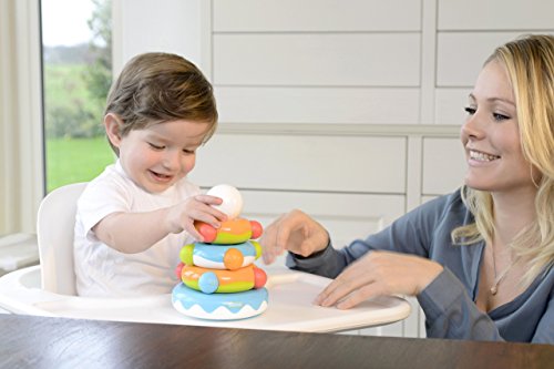 With a rattle in every ring and surfaces to gum, this innovative stacking toy is sure to keep your little one engaged. The happy head topper fits snugly to secure the rings and keep all of the pieces together.