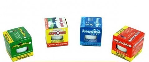 -. Feature : Jet Streamer - When hit, The Jet Streamer ejects 15 feet of streaming red ribbon. Guaranteed to shock any golfer / Phantom - Official size golf ball, with a genuine look and feel. When someonee tee's off this ball, it implodes in to a giant wall of water / Unputtaball - When chipped or putted This gag golf ball, skips, & gyrates, but never, never goes straight. It's hilarious & unpredictable / Exploding Golf Ball - The Exploder looks like a regular golf ball but with one very distinct difference. It blows up in a spectacular cloud of smoke-like powder!