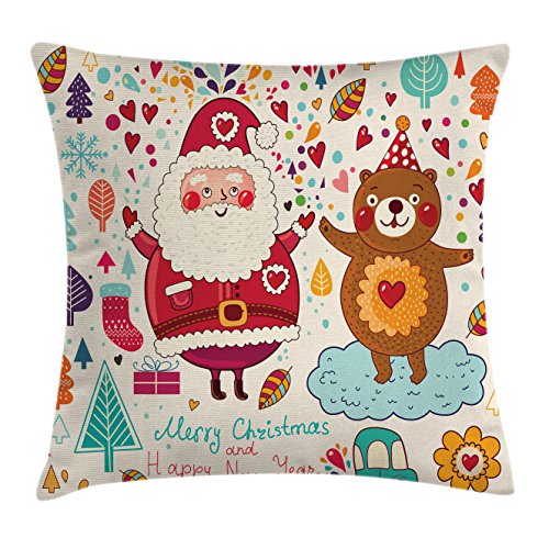(Ambesonne)/Bedding Bath/Bedding/DIRECT FROM USA/Christmas Decorations Throw Pillow Cushion Cover by Ambesonne, Santa and Teddy Bear Vintage Chr...