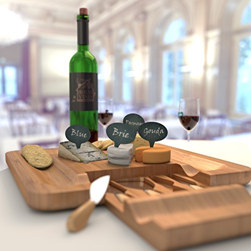 Cheese Marker Gift Set of 4 Cheese Labels Made of Natural Slate and 2 Chalk Markers. Wine and Cheese Tasting Gift Set ~ Gifts for Wine Lovers ~ HouseVines