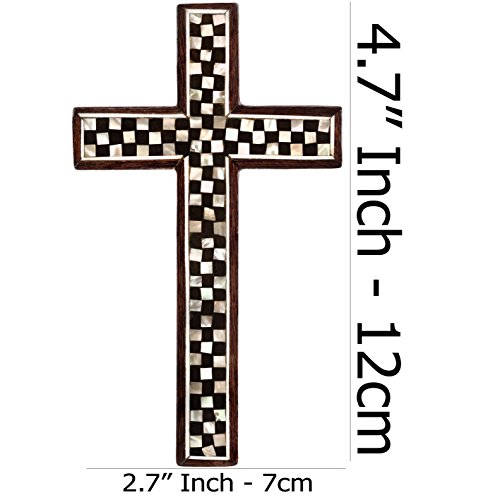 Leolana Mother Of Pearl Inlaid 100% Handmade Wall Cross, Classic 4.7 Inch - 12.00cm