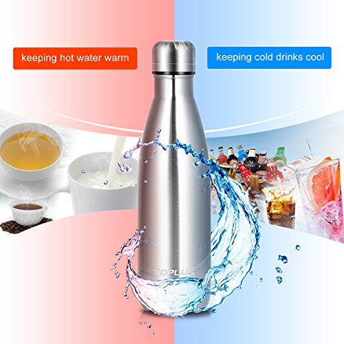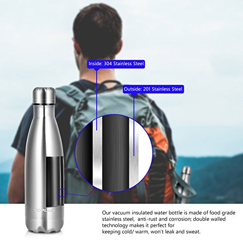 (Toplus)/Kitchen Dining/Storage Organization/DIRECT FROM USA/Toplus Vacuum Insulated Thermos Leak-proof Stainless Steel Water Bottle, 17 Oz (500 ml), Silver