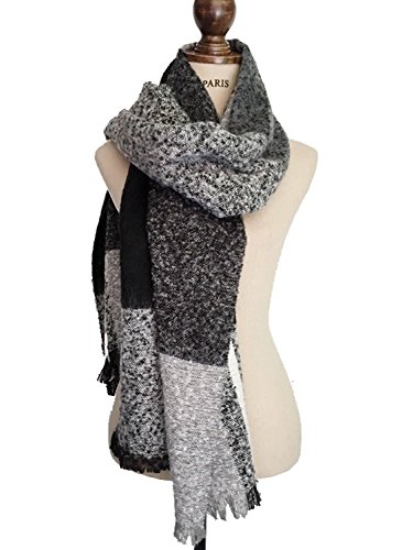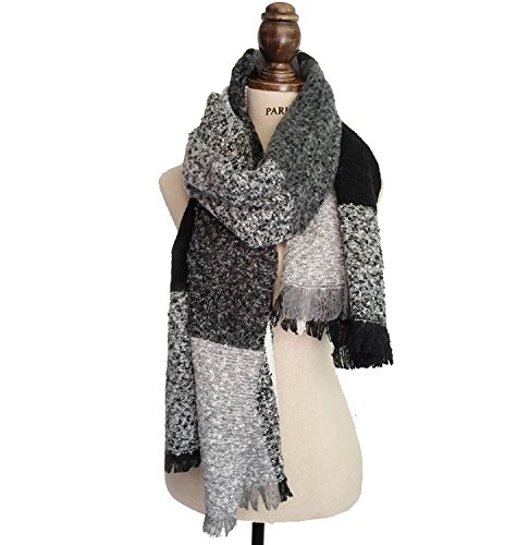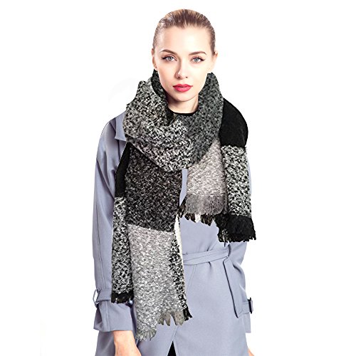 PlusGood Damen Schal gross kuschelig warm Winterschal weich Deckenschal Kariert Herbstschal Poncho Schultertuch