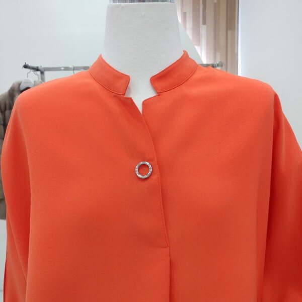 반하이넥라인에 부드러운 페이스라인을 선사하는 제품으로 앞면중앙에 버튼여밈을 주어 이지한 클로징은 물론
