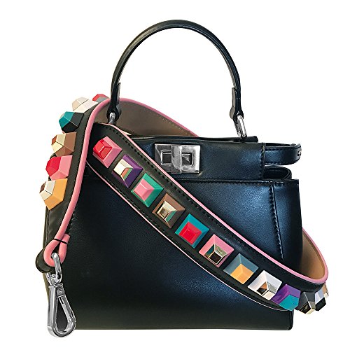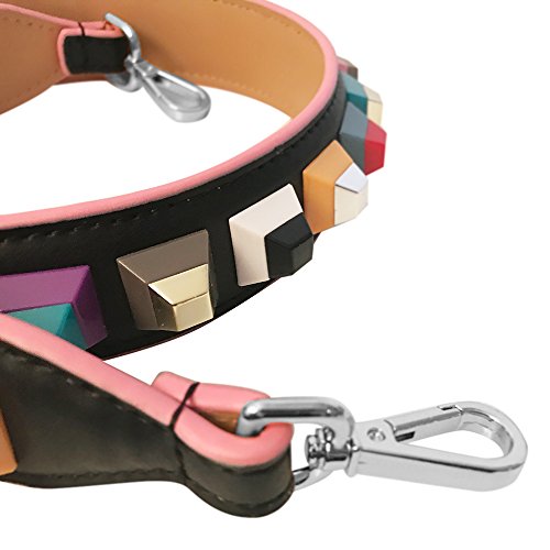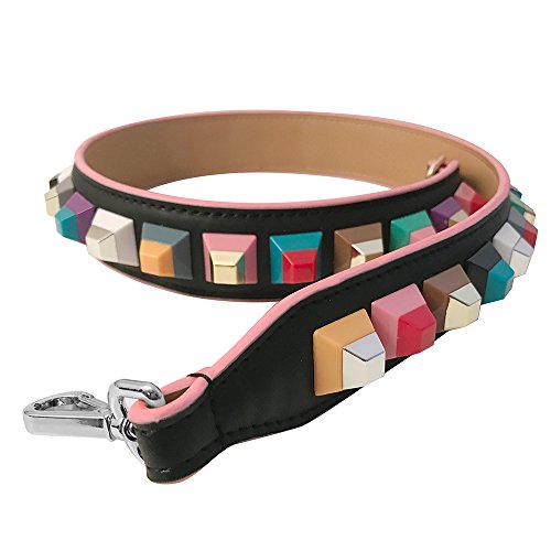 Maison De Coco Multi Color Studs Leather Bag Strap (Strap Only) Purse Strap, Replacement Shoulder Strap, Removable Strap (Black/Silver)