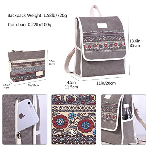 ArcEnCiel Women Girl Backpack Purse Canvas Rucksack Shoulder Bag with Purse
