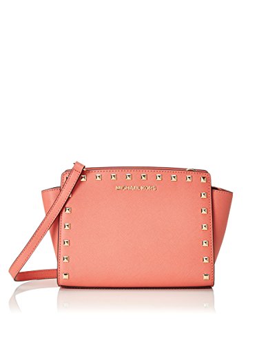 MICHAEL Michael Kors Womens Selma Leather Studded Crossbody Handbag Pink Medium