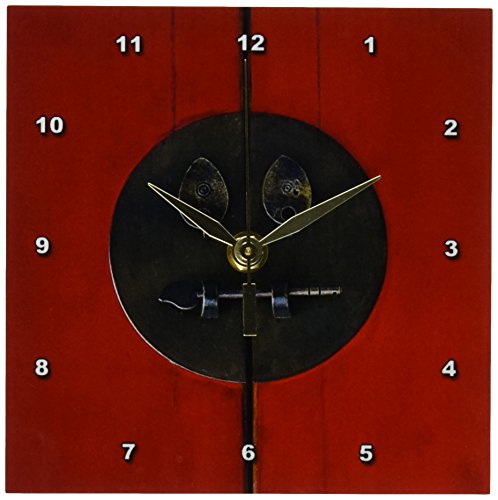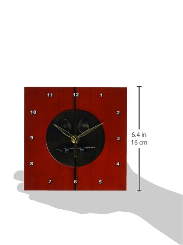 Oriental lock desk clock is a wonderful compliment to any room in your home or office. Made of durable high grade aluminum. This clock has a high gloss mirror like, UV coated, scratch resistant finish and is suitable for a moist environment. Measures 6 by 6-inch and requires one aa battery; not included.