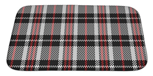 Gear New No Slip Microfiber Memory Foam Chinese Plastic Plaid Checker Bag in Black & White Pattern Bath Rug Mat, 34" X 21"
