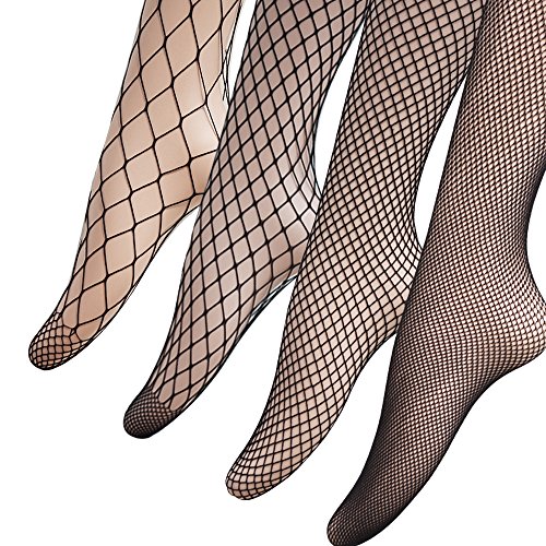 -. Feature : Material: 85% Nylon & 15% Spandex; 100% Brand New and High Quality, Very comfortable, soft, greater durablity and stretchability, not easy to rip off / One Size fits models heights under 5'9", weights under 160 Ibs, 100% designed and tested for the toughest situations and environments / A "must-have" item for your sexy wardrobe. The design is a wide diamond net fishnet pattern which gives a dazzling geometric effect on legs, make your legs looks more slimmer; See-through leg gives a sense of sex, reflect your sexy and charming, very attractive, wild and hot for drawing attention from your lover / Wear these sexy fishnets to spice things up or to a rave, club, or festival, makes a great layer to any adult costume, or as a base layer for lingerie / Care recommendation: Wash it at first before you wear; Be careful with pulling it up if you have long sharp nails; Hand wash in cold water, drip dry; Do not dry clean; Cannot ironing and bleach. Package: 4 packs. Size: four size fishnet create different style for you.