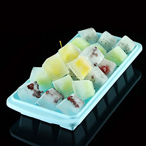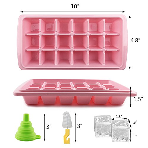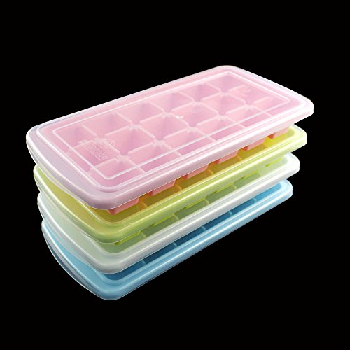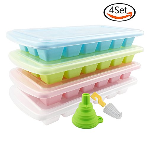 Whonline 4 Set Reusable Plastic Square Ice Cube Trays Ice molds with Lid with Funnel & Brush ( 4 Colors )