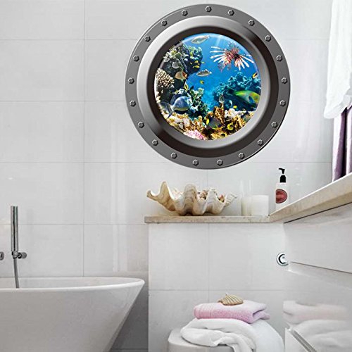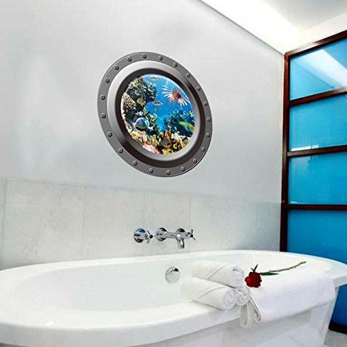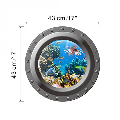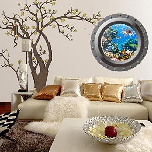 3D Ocean View Window Submarine Wall Sticker Decals Porthole Graphics Sea Portal Peel Stick Sea Cruise Wall Art Kids Room Decor^w004.
