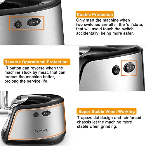 Aobosi Meat Grinder Mincer is the ultimate home meat grinder that allows users to professionally grind meat and is versatile enough to take care of all your meat grinding needs in a short amount of time. It is convenient to clean and operate. Their motors are durable and boast stable operation for long-term use.If you want to make hamburgers, sausages and other meat products at home,choose Aobosi Meat Grinder! It can not only can save money, but also gives you greater control over the quality and content of the meat products that you consume.
