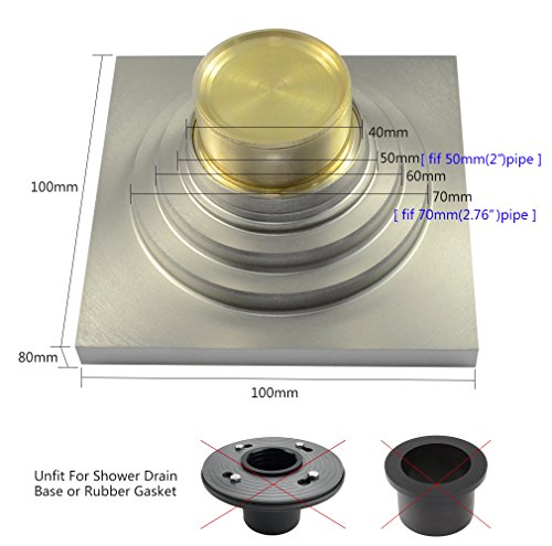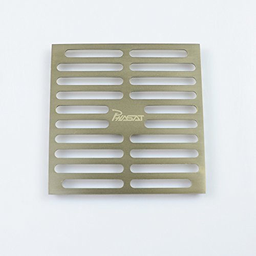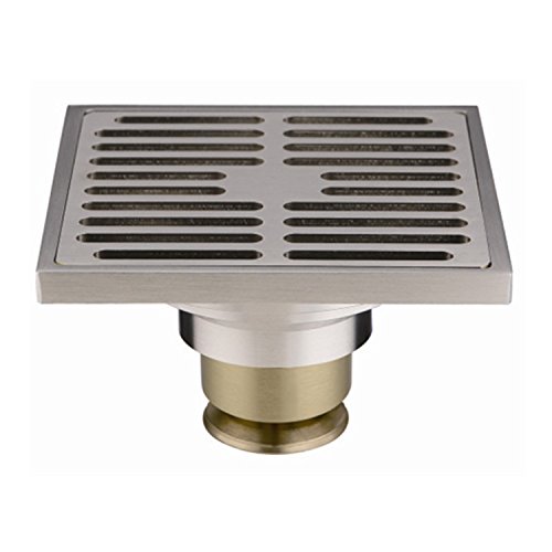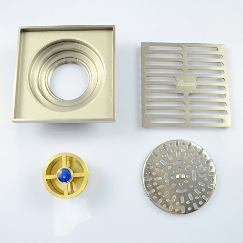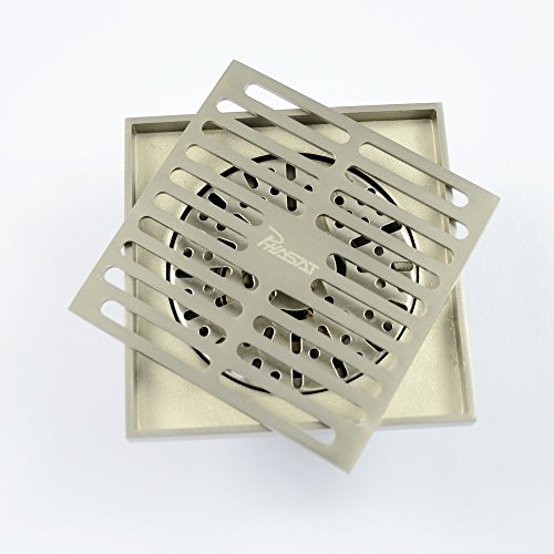 PHASAT Contemporary 4 inches Square Brushed Nickel Finish Brass Floor Drain with Removable Strainer 80301N