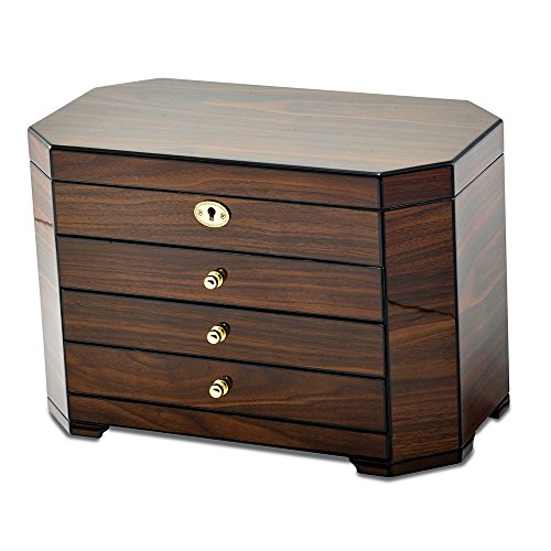 Walnut Wood Veneer with Black Accents Locking Jewelry Box