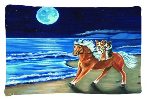 Caroline's Treasures 7318PILLOWCASE Corgi Beach Ride On Horse Fabric Standard Pillowcase, Large, Multicolor