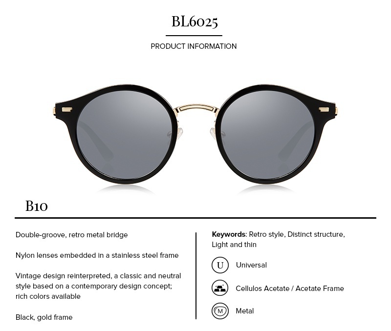 A timeless design from BOLON which features nylon lenses embedded in a stainless steel BLACK and ROUND frame, together with a double-groove metal bridge are the perfect reinterpretation of the vintage style. A classic style with a contemporary design concept. Feature BLACK color lenses offering UV 400 protection to shield your eyes from the sun. Comes with a free premium black leather protective case & a branded cleaning cloth.