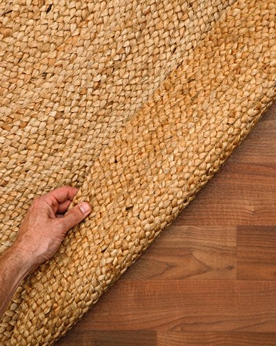 All natural 100% Jute, hand braided by Artisan rug maker. Jute is naturally durable yet soft. Like any rug, rug pads are recommended as it will prolong the longevity of your jute rug and protect hardwood floor. Do not pull loose fiber, clip and remove the loose ends with scissors. Variations are part of the natural beauty of natural fiber.Feature
