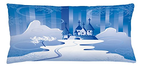 Winter Throw Pillow Cushion Cover by Ambesonne, Christmas Scene in Northern Part of the World S...