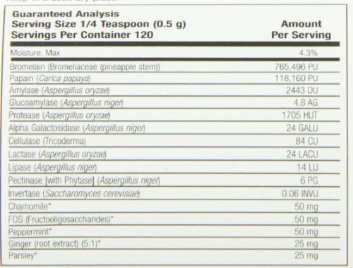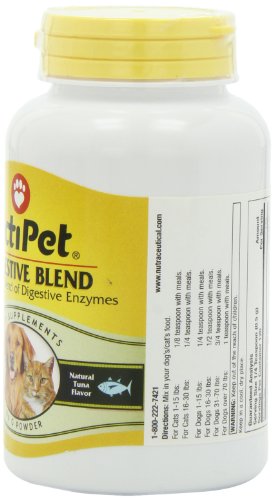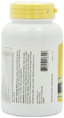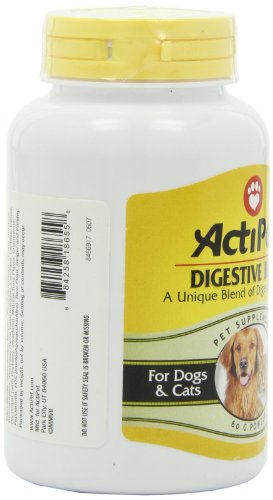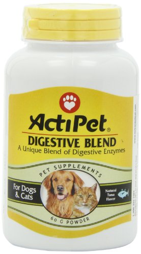 Actipet Digestive Blend powder contains a blend of enzymes that help support digestion and assimilation of proteins, fats and carbohydrates.