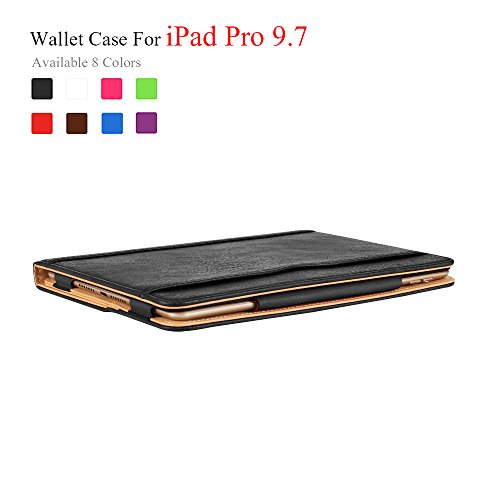 iPad Pro 9.7 Case - Leather Stand Folio Case Cover for Apple iPad Pro 9.7 Inch Case 2016, with Multiple Viewing Angles, Document Card Pocket (Black)