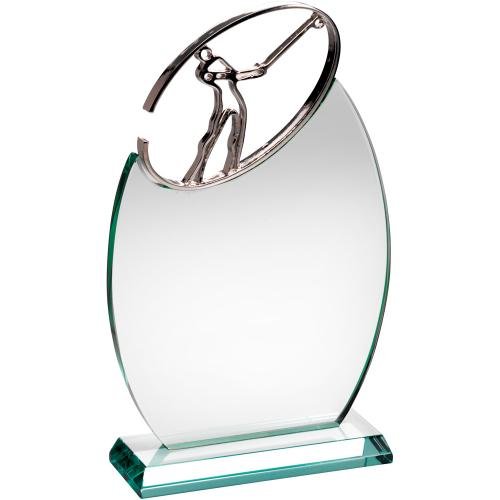 Golf Trophy - oval Glas mit Metall Golfer (10 mm dick) - in Präsentation Fall