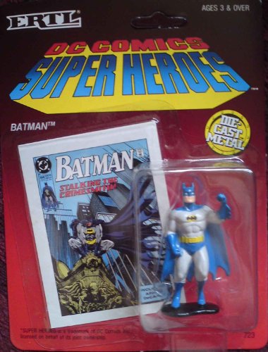 -. Binding : Toy -. Brand : ERTL -. EAN : 0036881007234 -. Feature : Diecast -. Label : The ERTL Company, Inc. -. Manufacturer : The ERTL Company, Inc. -. Model : 723 -. MPN : 4145819 -. PartNumber : 4145819 -. ProductGroup : Toy -. ProductTypeName : TOYS_AND_GAMES -. Publisher : The ERTL Company, Inc. -. SKU : RO-6AXI-IMMN -. Studio : The ERTL Company, Inc. -. Title : DC Comics Super Heroes Die-cast Metal Batman with Raised Fist Figurine with Collectible Card -. UPC : 036881007234