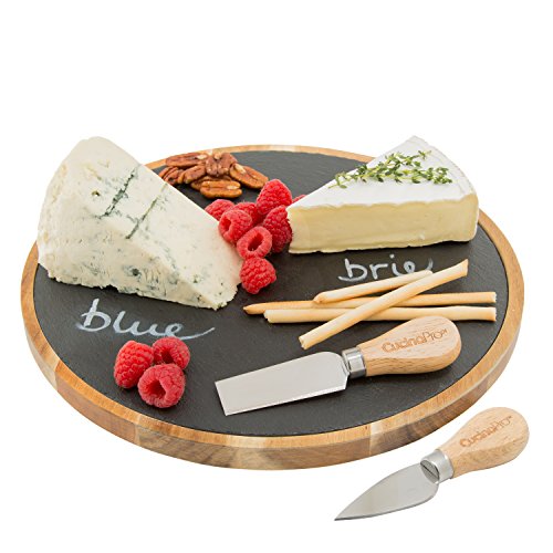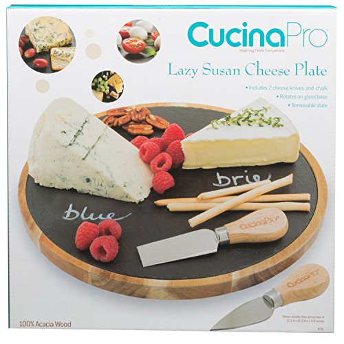 Studio : CucinaPro Publisher : CucinaPro Product Description Cheese Board- Lazy Susan Rotating Cheese Plate Platter with 2 Cheese Knives and Chalk- Great Mother's Day Gift: The CucinaPro Lazy Susan Cheese plate features a round rotating slate plate with 2 cheese knives and chalk included. This is the perfect cheese serving station to use while entertaining or simply enjoying dinner at the table with your friends and family. 0